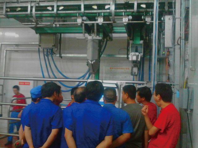 在集團(tuán)于建平***副董事長(zhǎng)提出“加快、***提高屠宰線自動(dòng)化”的號(hào)召下,公司積極與具有國(guó)際品牌的屠宰設(shè)備廠家進(jìn)行溝通和洽談并簽訂合同。2013年6月15日,自動(dòng)開(kāi)骨開(kāi)膛機(jī)隨著吊車(chē)的繩索,緩緩落到洛陽(yáng)正大院內(nèi)。