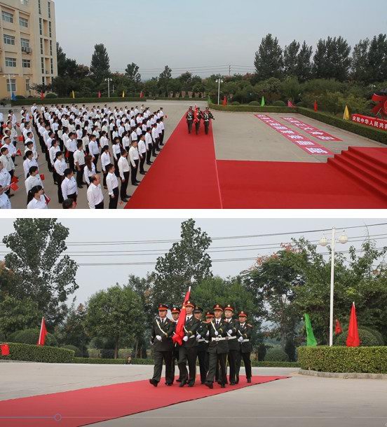 早上八時零八分,升旗儀式正式開始,在雄壯的軍樂聲中,颯爽英姿的護(hù)旗手邁著整齊的步伐護(hù)送國旗走向升旗臺。雄壯的《義勇軍進(jìn)行曲》響起,鮮艷的五星紅旗冉冉升起,迎風(fēng)飄揚(yáng),全體員工手持鮮艷的五星紅旗行注目禮,共同高唱國歌,表達(dá)對新中國的崇敬和熱愛。