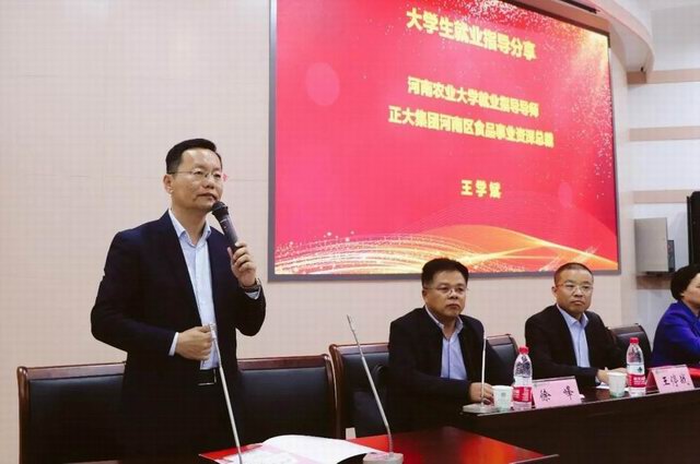 王學斌***總裁講述了自己的奮斗歷程,并結合自身經歷和正大集團事業(yè)規(guī)劃,為在場畢業(yè)生做就業(yè)指導報告。為大家的就業(yè)選擇提供指導,提醒同學們選擇自己適合的工作。